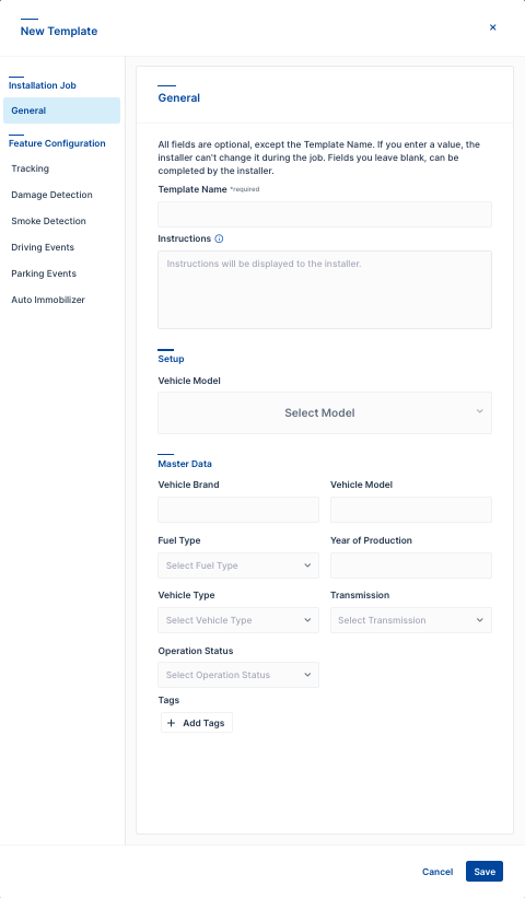 - Go to Fleet → Installation & Maintenance → Templates → New Template.